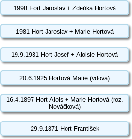 Tento dům vybudoval 29. 9. 1871 Hort František. Od 16. 4. 1897 dům vlastnili Alois a Marie Hortovi. Marie Hortová ovdověla roku 1925. Od 19. 9. 1931 vlastnili dům Josef a Aloisie Hortovi, po nich od 1981 Jaroslav a Marie Hortovi. Od roku 1998 dům patří Jaroslavu a Zdeňce Hortovým, kteří do roku 2011 dokončili jeho přestavbu a dům je trvale obýván.