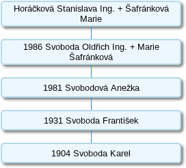 Vlastníkem tohoto domu byl od roku 1904 Svoboda Karel. Dalším vlastníkem byl od roku 1931 František Svoboda. Od roku 1981 dům náležel Svobodové Anežce. Roku 1986 dům připadl Oldřichu Svobodovi a Marii Šafránkové. V současné době již žádnému z rodiny Svobodů dům nenáleží. Historicky se tomuto domu říká u Stolařů. V minulosti totiž v tomto domě bydlel řemeslník pracující s dřevem.