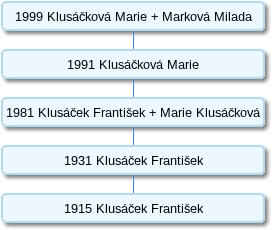 Tento dům vlastnil před rokem 1900 Antonín Klusáček. Roku 1915 byl jako majitel zapsán František Klusáček, ten je připomínán ještě roku 1936. Od roku 1981 dům vlastnili František a Marie Klusáčkovi. Od roku 1999 dům náleží Marii Klusáčkové a Miladě Markové.
