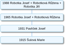 Toto číslo vzniklo oddělením části z původního gruntu č. p. 11. Roku 1915 je jako jeho majitelka zapsána Šulová Marie. Roku 1931 je v majetku Pavlíčka Josefa, který je jako majitel uváděn ještě v roce 1936. Roku 1965 se majiteli domu stali Josef a Růžena Robotkovi. V majetku rodiny Robotkových se tento dům nachází dodnes.