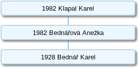 Toto číslo popisné vystavěl roku 1928 Karel Bednář. V roce 1982 dům patřil Anežce Bednářové, po které se vlastníkem domu stal Karel Klapal.