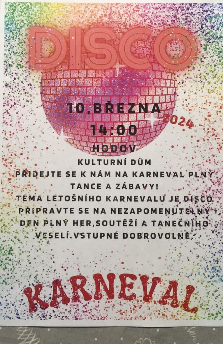 Jste zdeObecní úřad / Úřední deska / Aktuality / 10.3.2024 - 14:00 - Dětský karneval Hodov