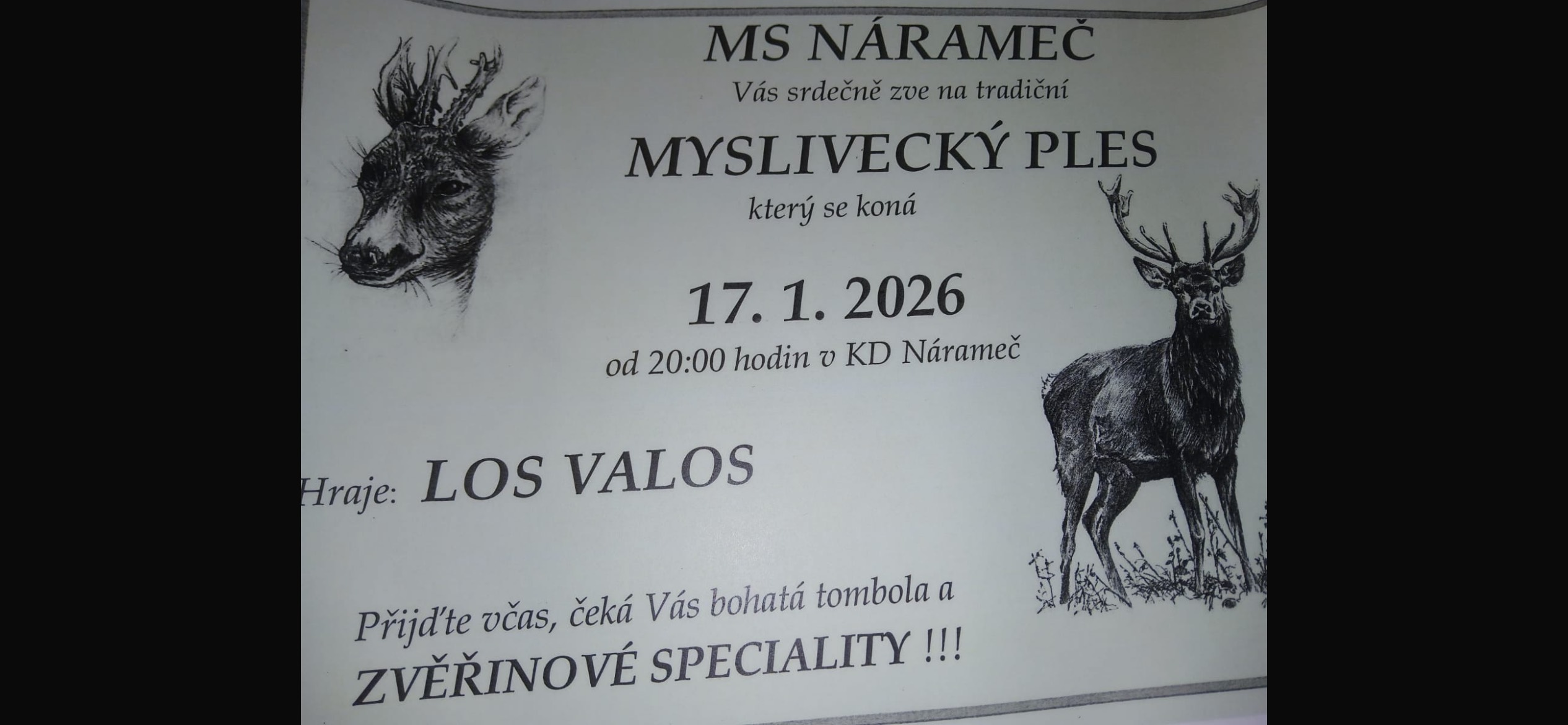 Jste zdeObecní úřad / Úřední deska / Různé / 17.1.2026 - Myslivecký ples Nárameč