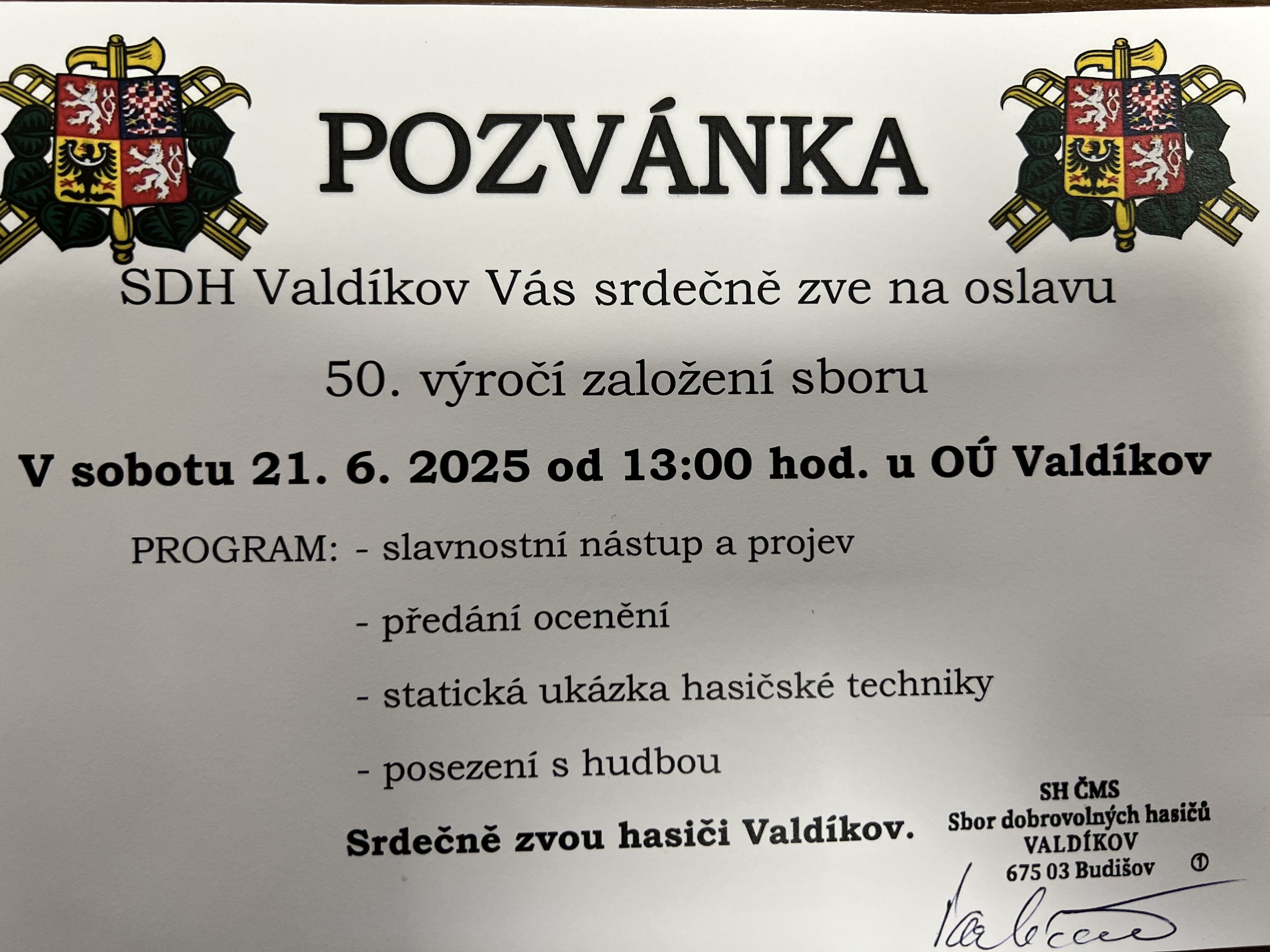 Jste zdeObecní úřad / Úřední deska / Hasiči Hodov / 21.6.2025 - Oslavy výročí SDH Valdíkov