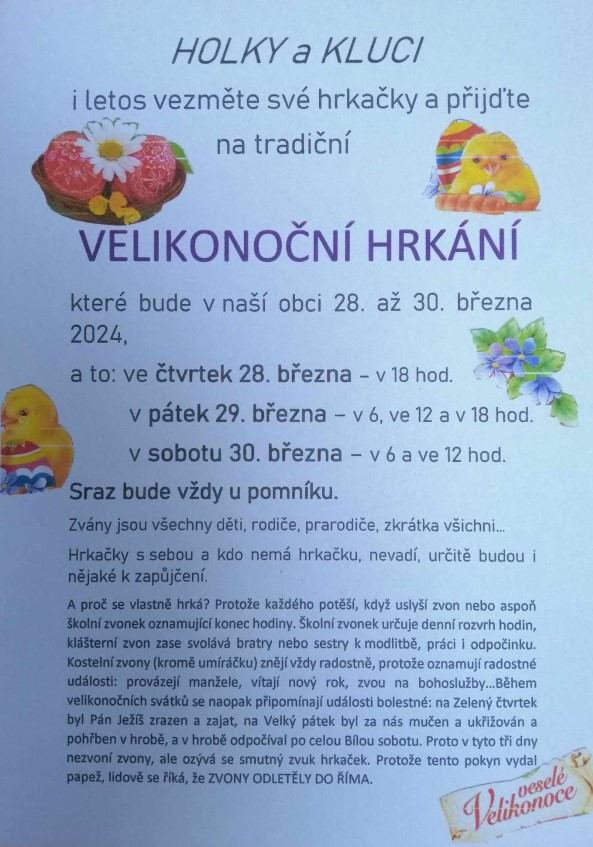 Jste zdeObecní úřad / Úřední deska / Různé / 28. - 30. 3. - Velikonoční hrkání