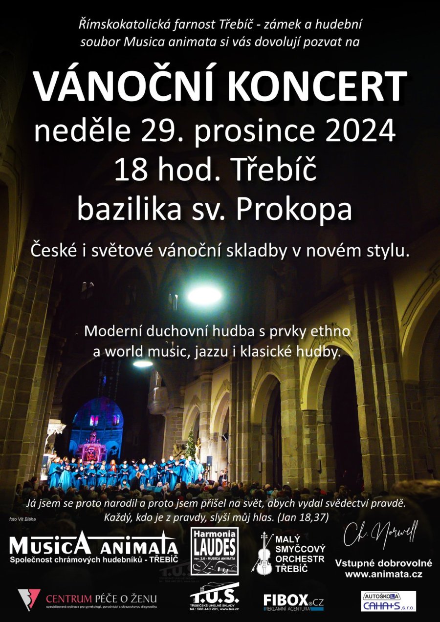 Hudební soubor Musica animata a Malý smyčcový orchestr Třebíč si vás dovolují pozvat na VÁNOČNÍ KONCERT – neděle 29. prosince 2024, 18 hod. Třebíč, bazilika sv. Prokopa