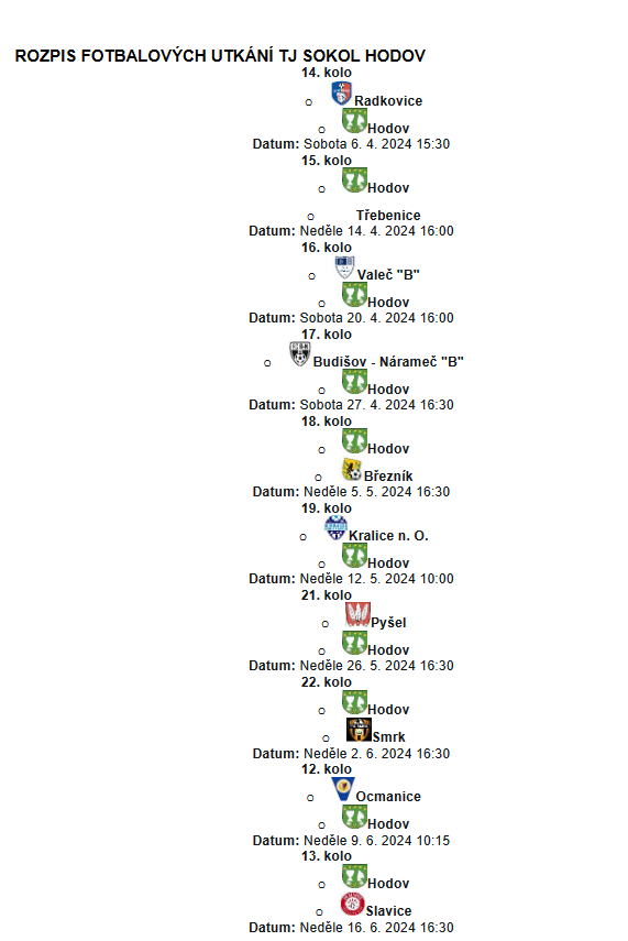 Jste zdeTJ Sokol Hodov / Fotbalové zápasy TJ Sokol Hodov - jaro 2024