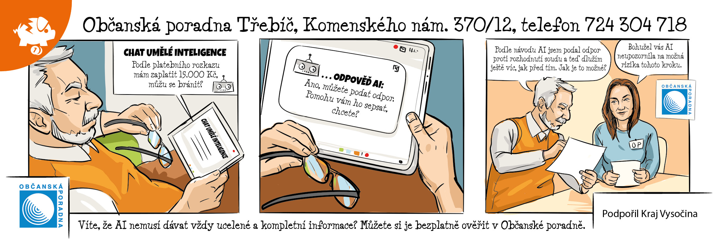 Jste zdeObecní úřad / Úřední deska / Komiks Občanské poradny Třebíč - duben 2026